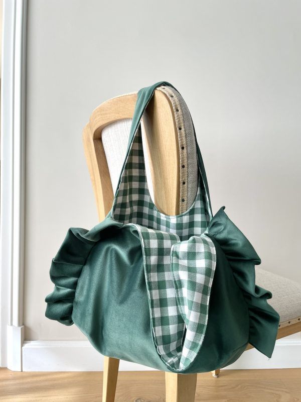 El interior del bolso es un cuadro vichy que combina perfectamente con el suave terciopelo exterior.